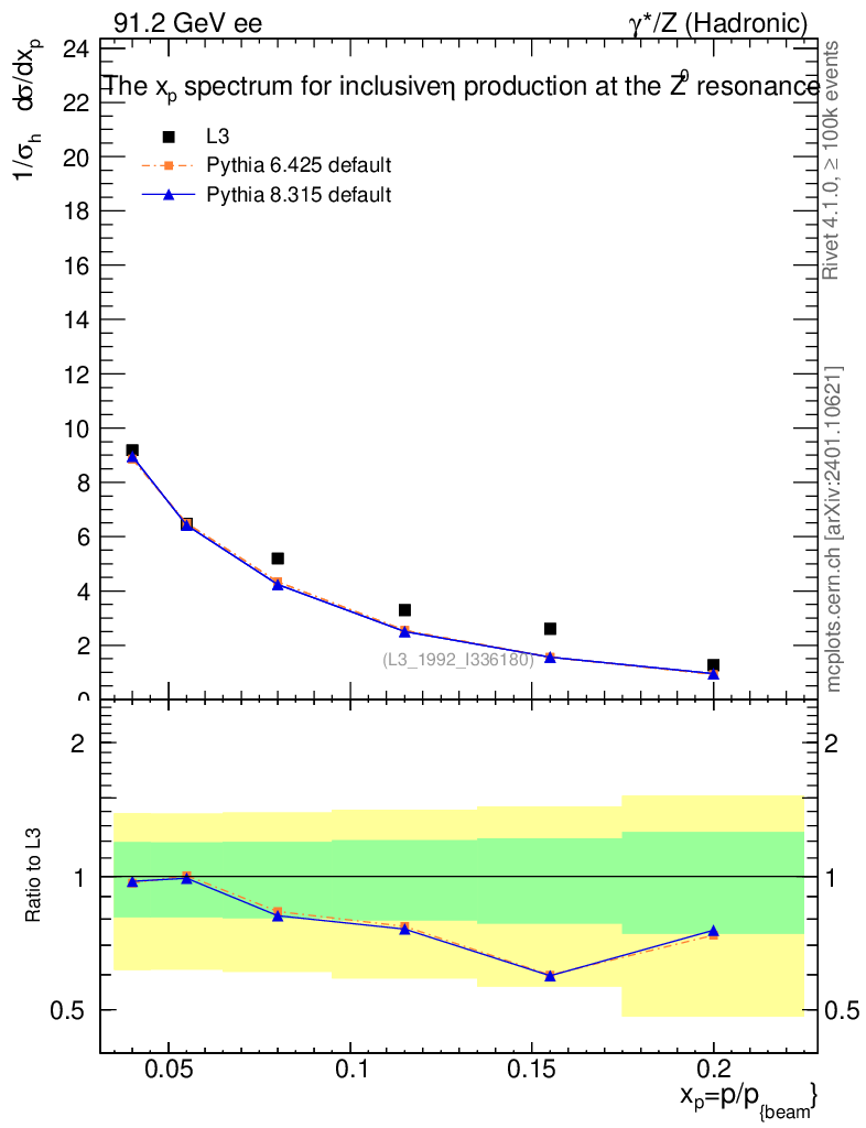 ee : γ*/Z (hadronic) : Identified Particles : η spectrum