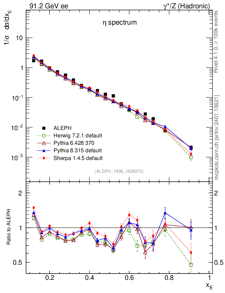 ee : γ*/Z (hadronic) : Identified Particles : η spectrum