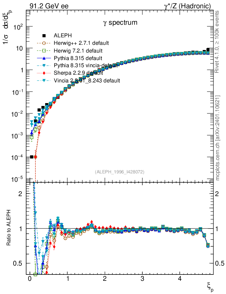 ee : γ*/Z (hadronic) : Identified Particles : γ spectrum