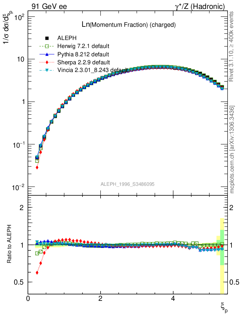 ee : γ*/Z (hadronic) : Charged Particles : Ln(x