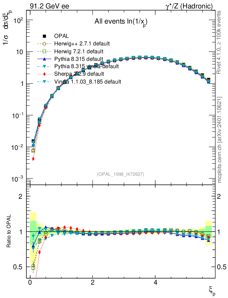 ee : γ*/Z (hadronic) : Charged Particles : Ln(x