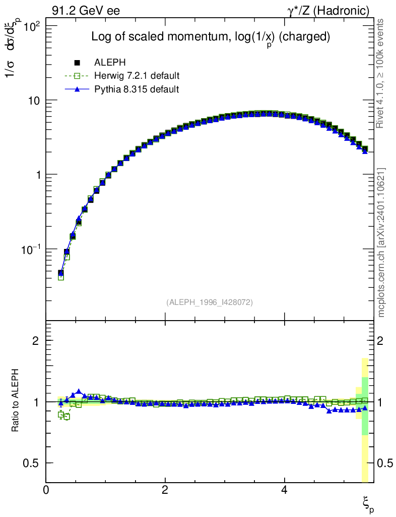 ee : γ*/Z (hadronic) : Charged Particles : Ln(x