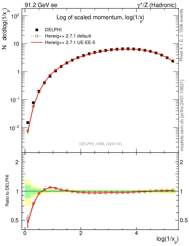 ee : γ*/Z (hadronic) : Charged Particles : Ln(x