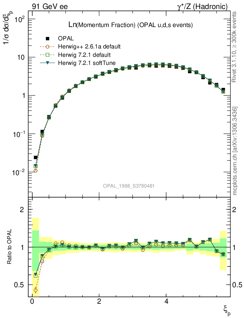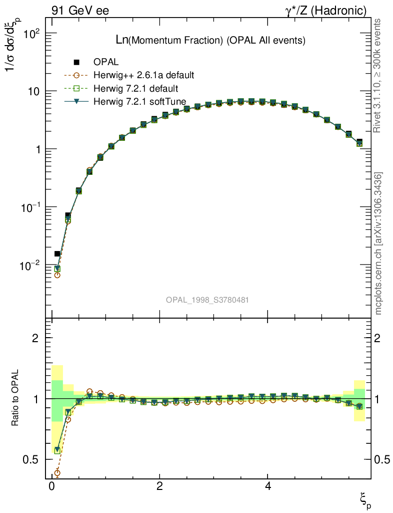 ee : γ*/Z (hadronic) : Charged Particles : Ln(x