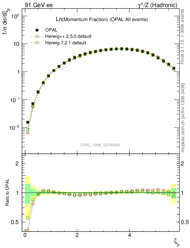 ee : γ*/Z (hadronic) : Charged Particles : Ln(x