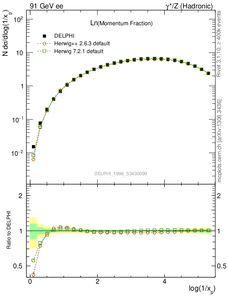 ee : γ*/Z (hadronic) : Charged Particles : Ln(x