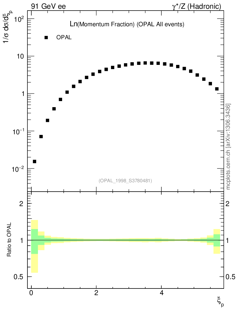 ee : γ*/Z (hadronic) : Charged Particles : Ln(x
