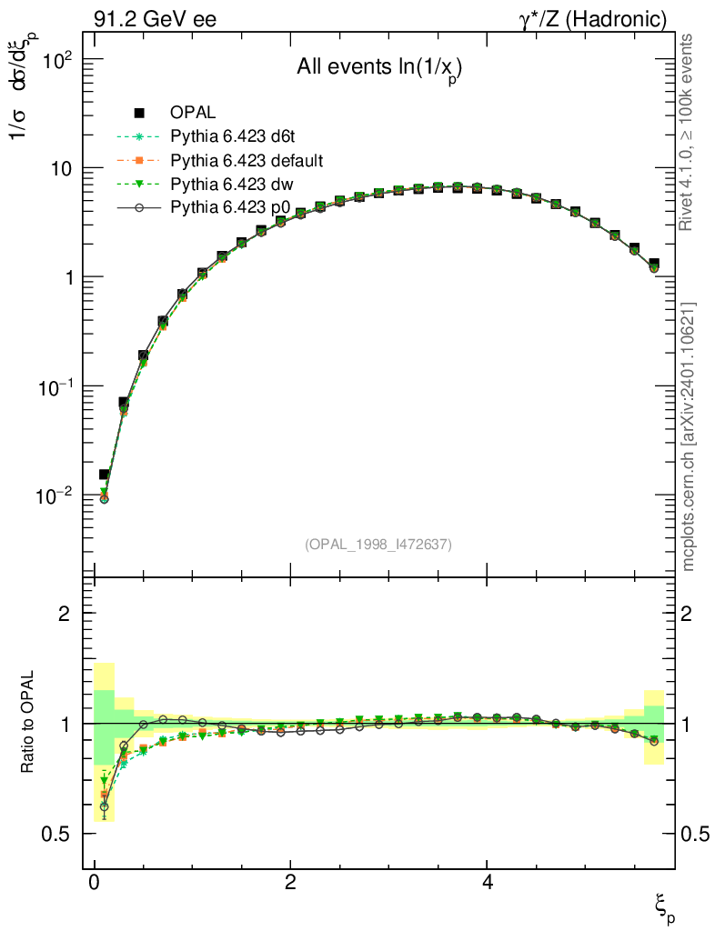 ee : γ*/Z (hadronic) : Charged Particles : Ln(x
