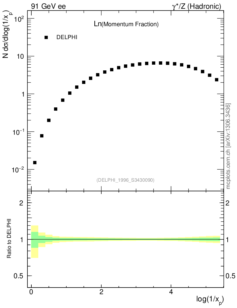ee : γ*/Z (hadronic) : Charged Particles : Ln(x