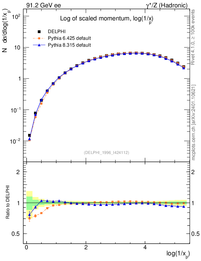 ee : γ*/Z (hadronic) : Charged Particles : Ln(x