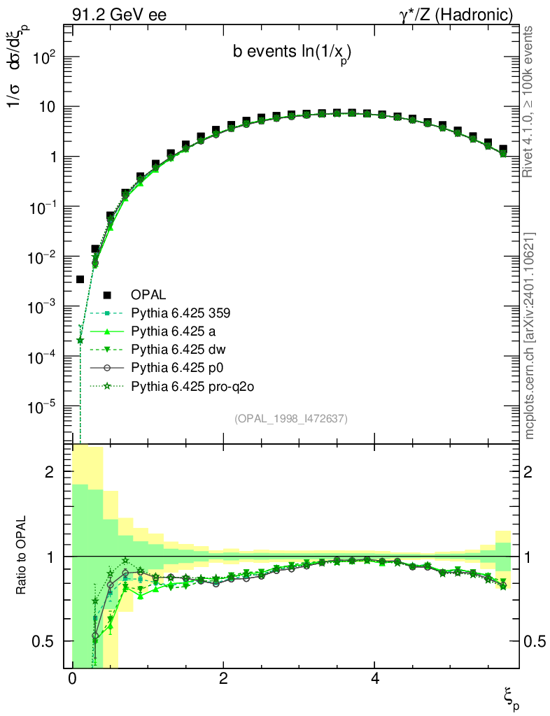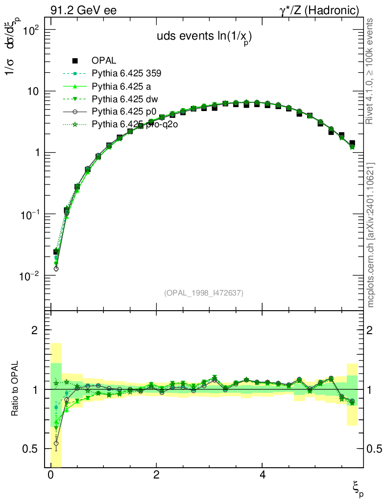 ee : γ*/Z (hadronic) : Charged Particles : Ln(x
