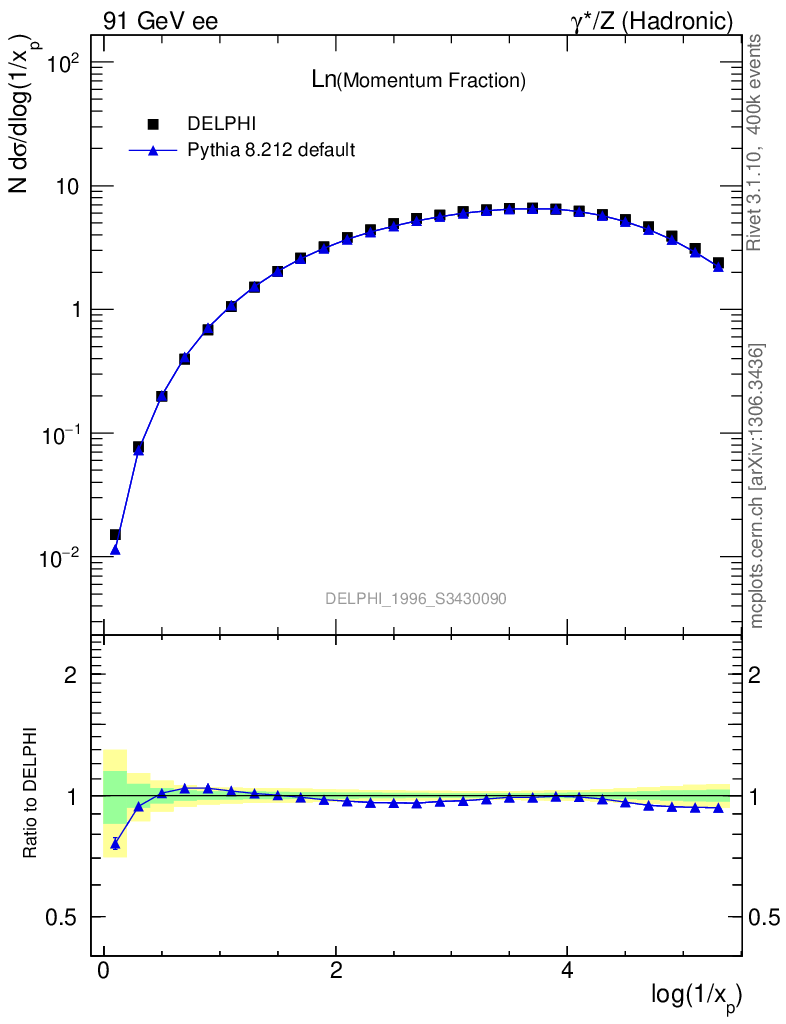 ee : γ*/Z (hadronic) : Charged Particles : Ln(x