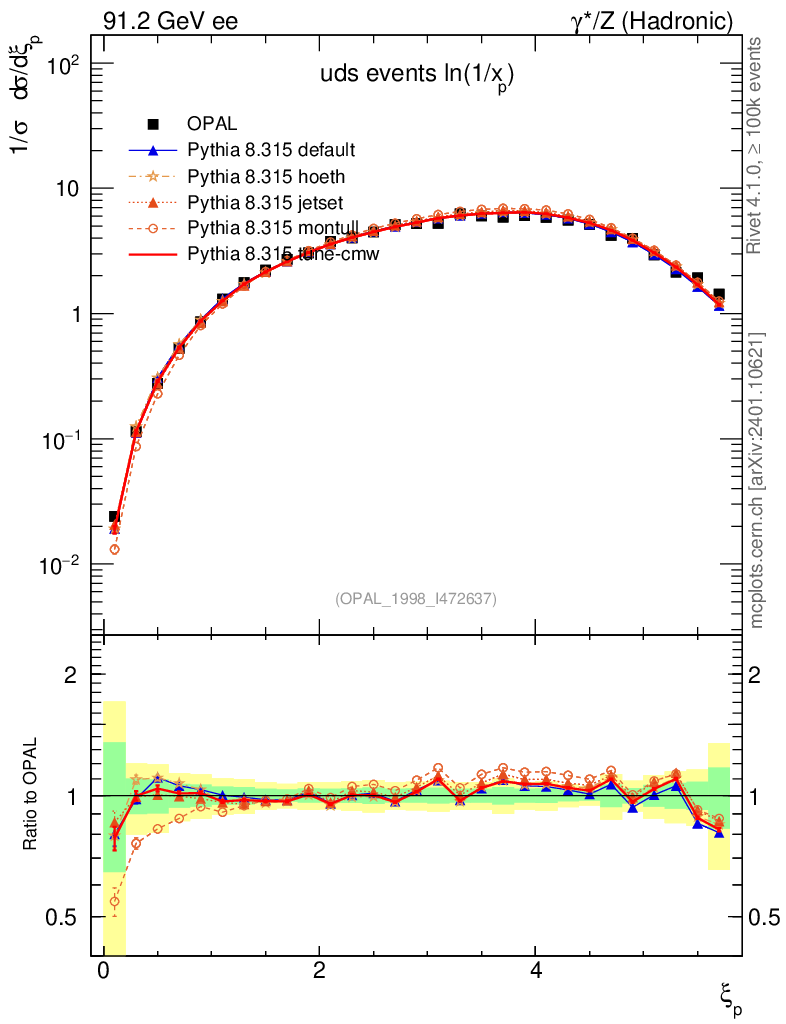 ee : γ*/Z (hadronic) : Charged Particles : Ln(x