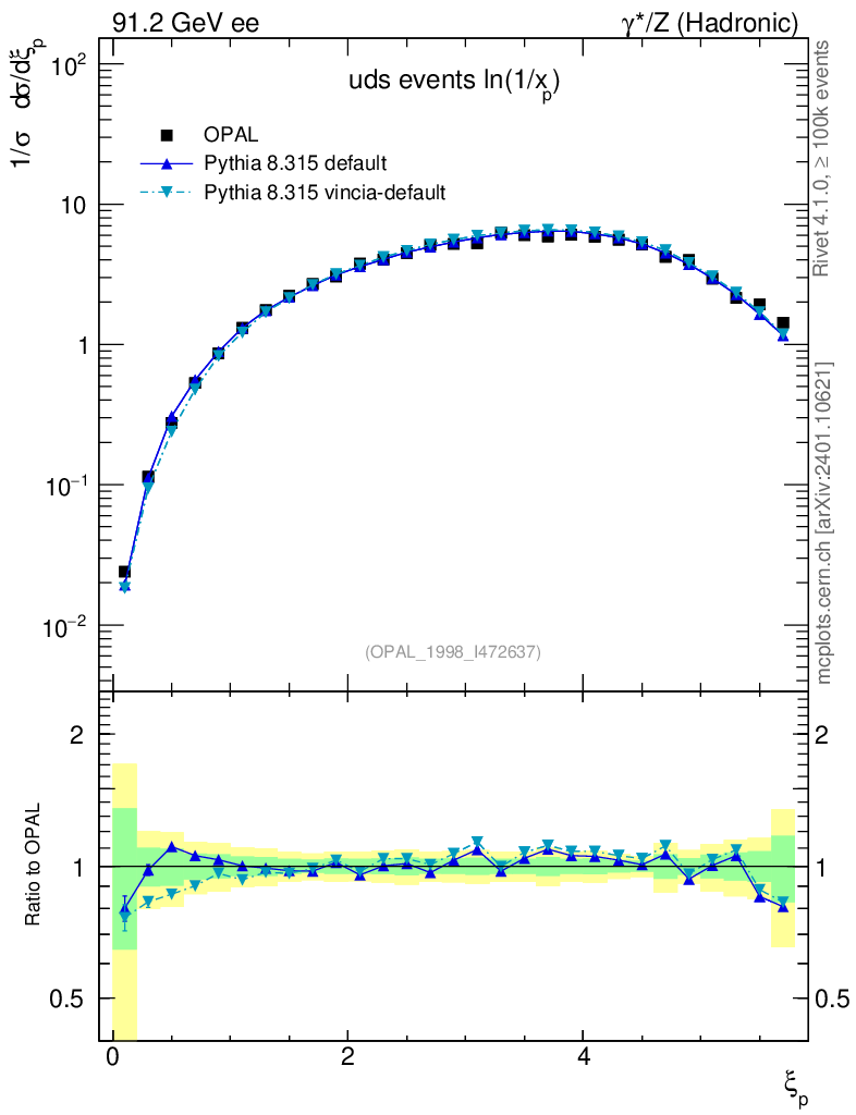 ee : γ*/Z (hadronic) : Charged Particles : Ln(x