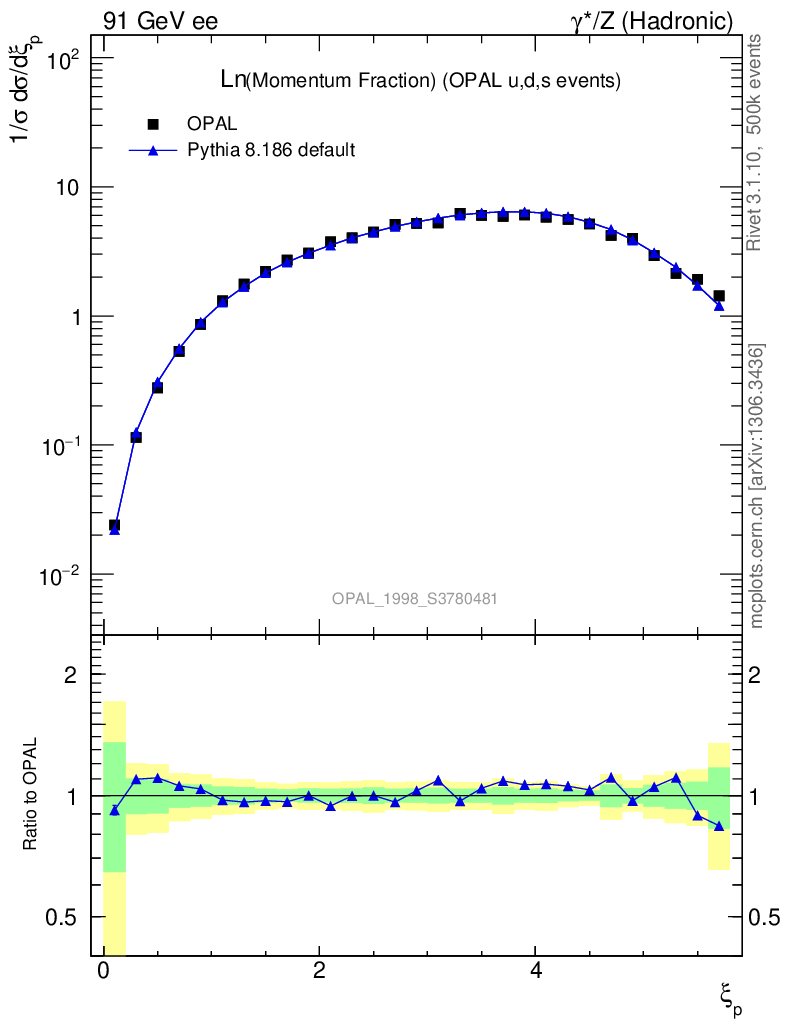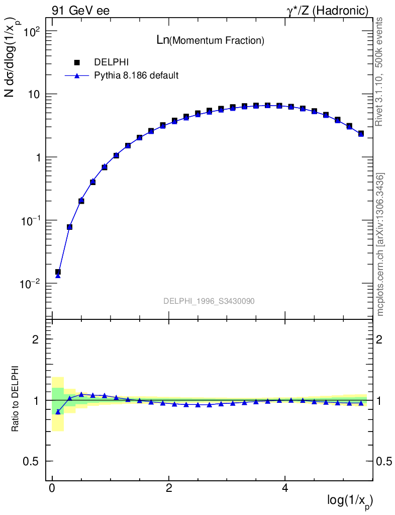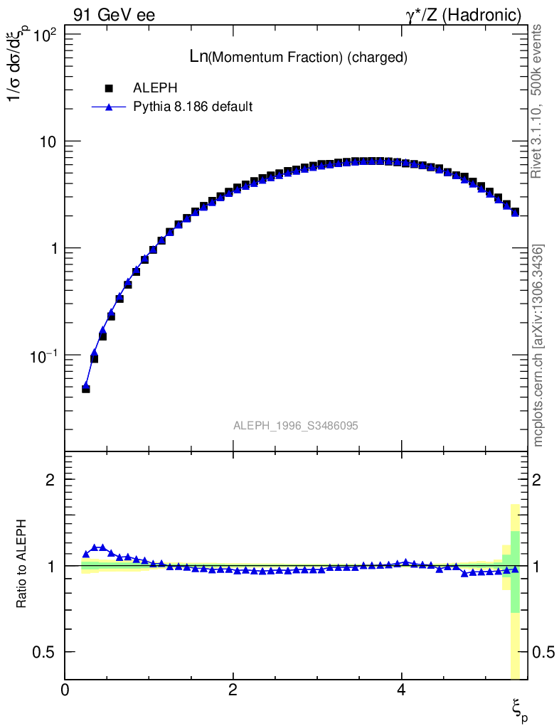 ee : γ*/Z (hadronic) : Charged Particles : Ln(x