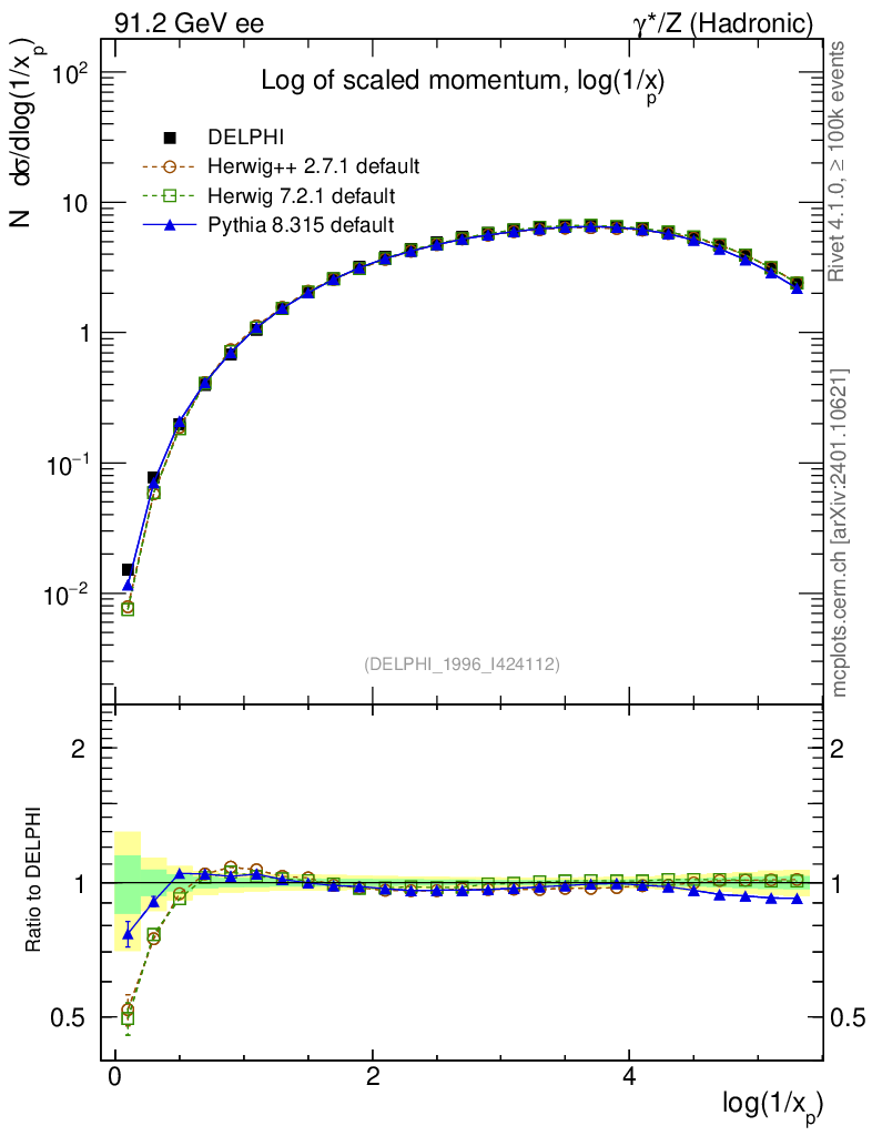 ee : γ*/Z (hadronic) : Charged Particles : Ln(x