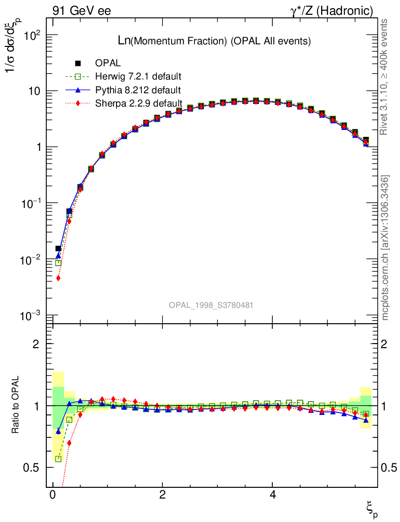 ee : γ*/Z (hadronic) : Charged Particles : Ln(x