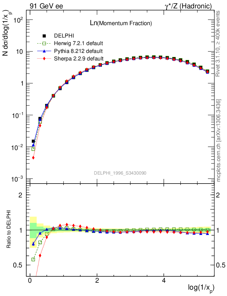 ee : γ*/Z (hadronic) : Charged Particles : Ln(x