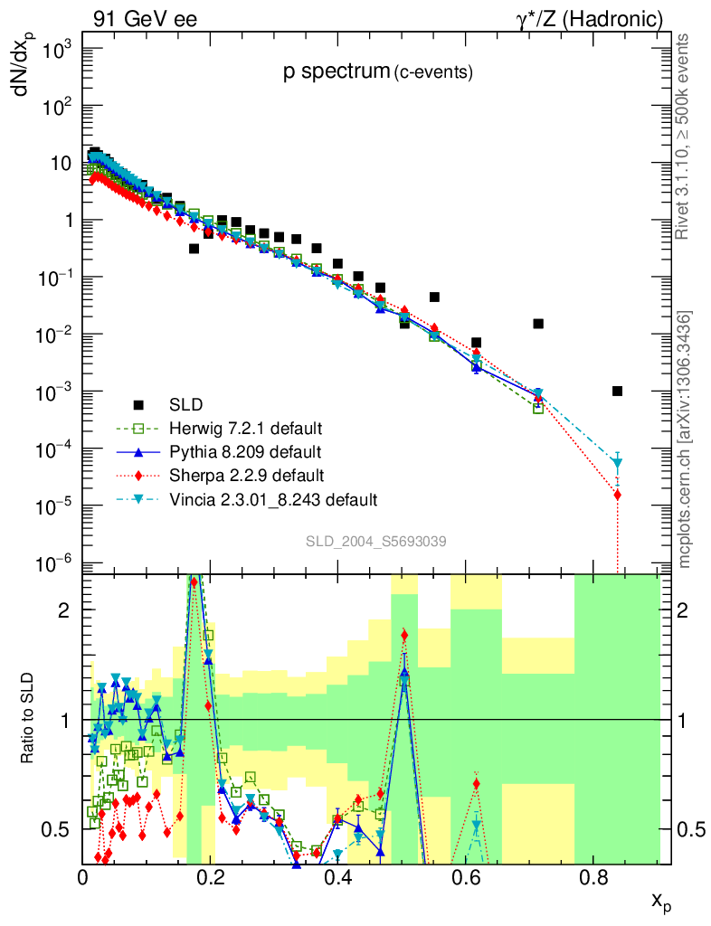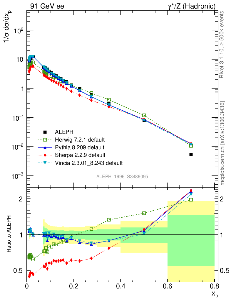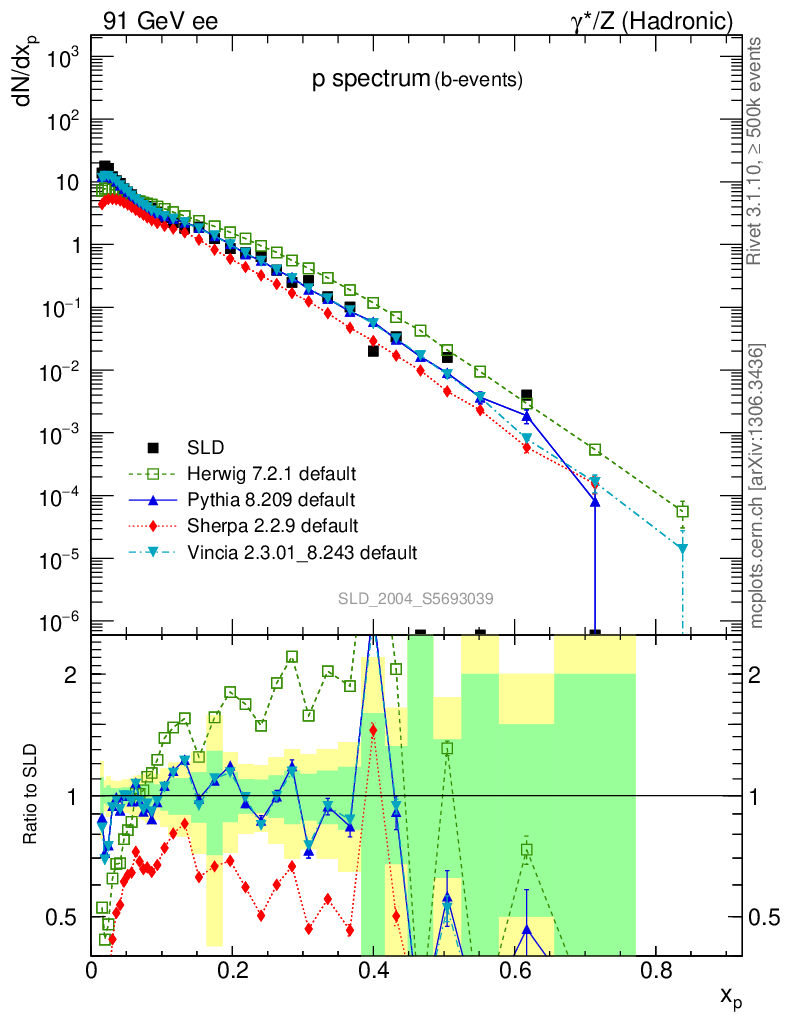 ee : γ*/Z (hadronic) : Identified Particles : p spectrum