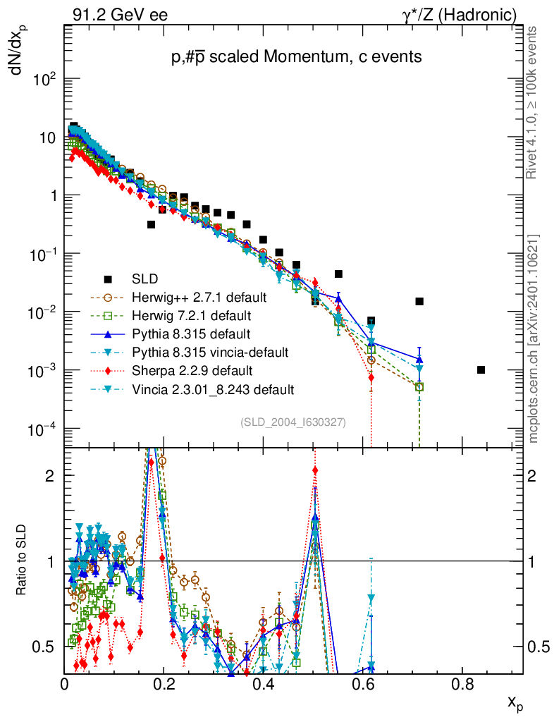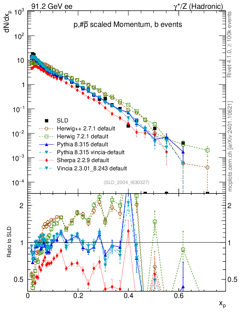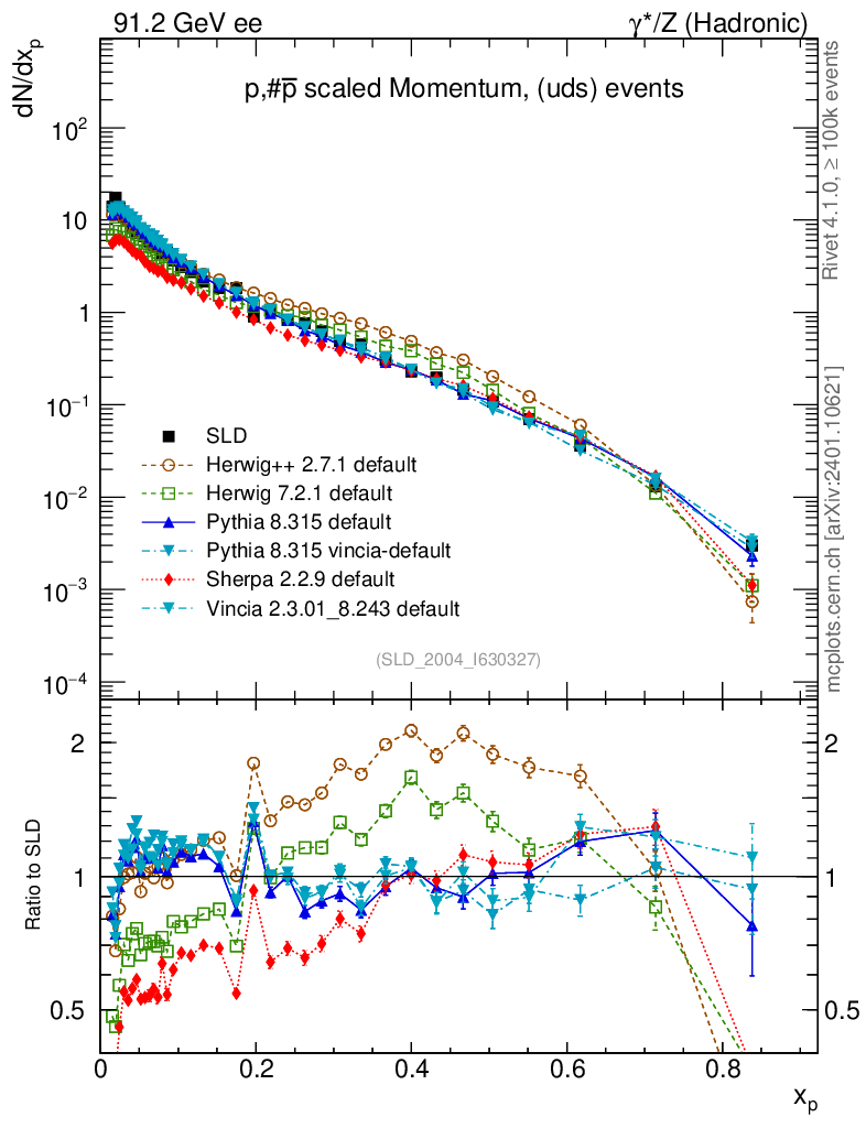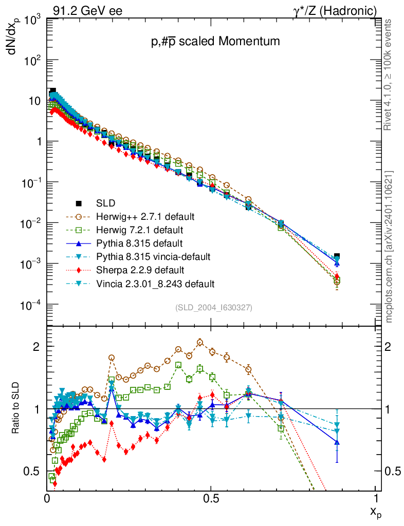 ee : γ*/Z (hadronic) : Identified Particles : p spectrum
