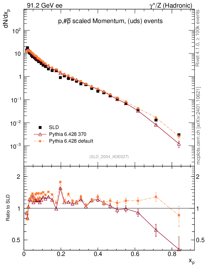 ee : γ*/Z (hadronic) : Identified Particles : p spectrum