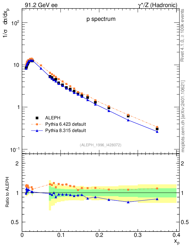 ee : γ*/Z (hadronic) : Identified Particles : p spectrum