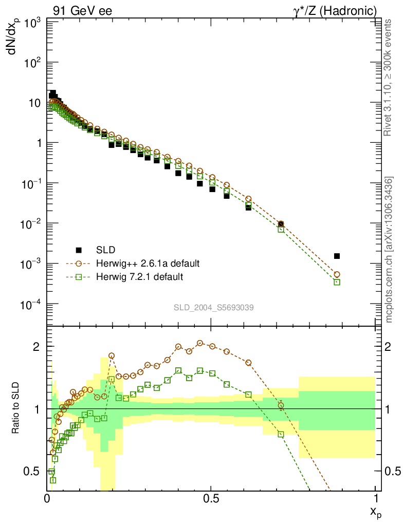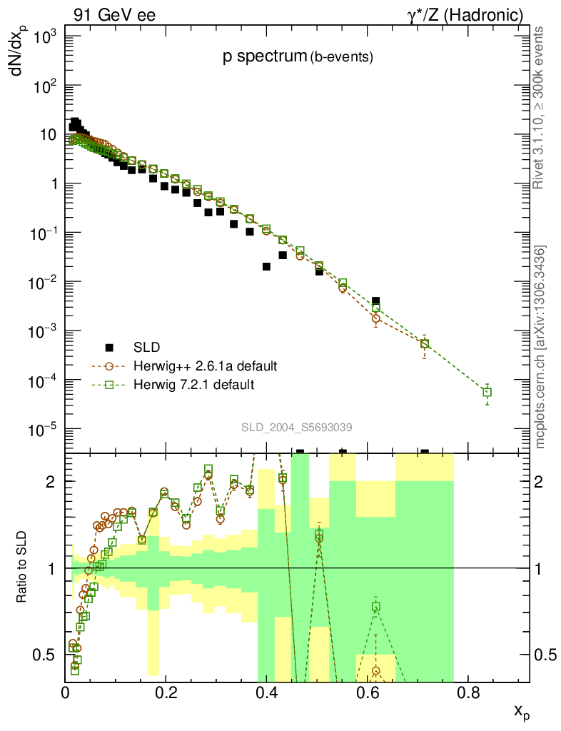 ee : γ*/Z (hadronic) : Identified Particles : p spectrum