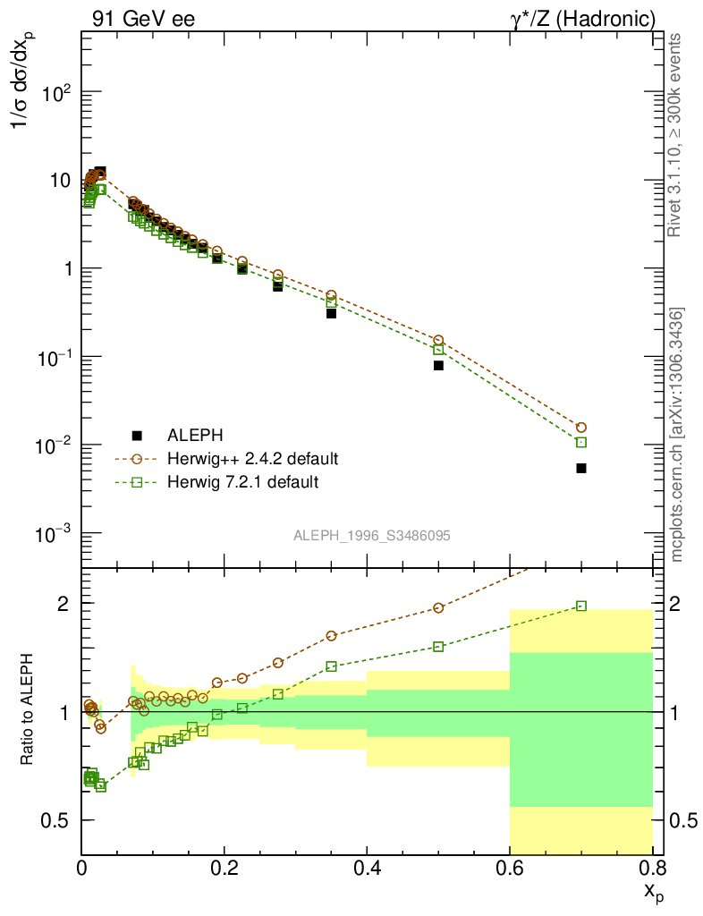 ee : γ*/Z (hadronic) : Identified Particles : p spectrum