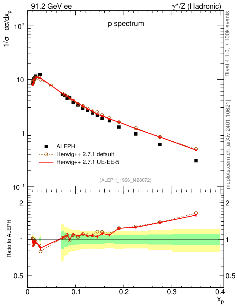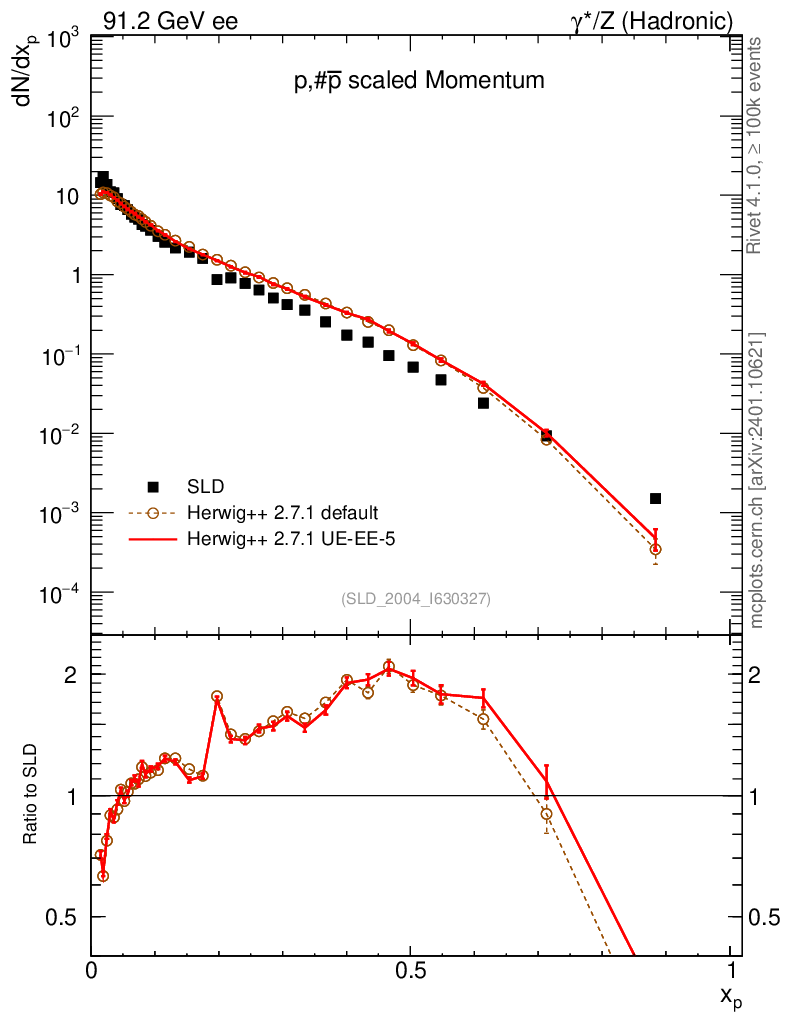 ee : γ*/Z (hadronic) : Identified Particles : p spectrum