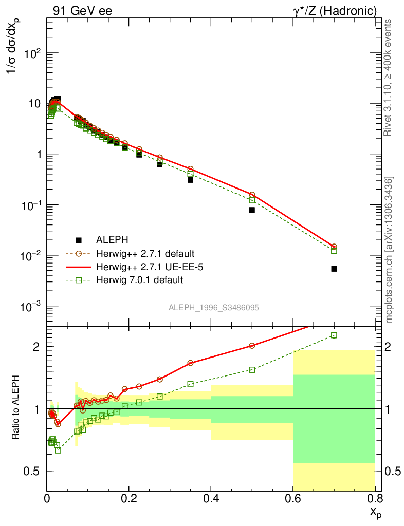 ee : γ*/Z (hadronic) : Identified Particles : p spectrum