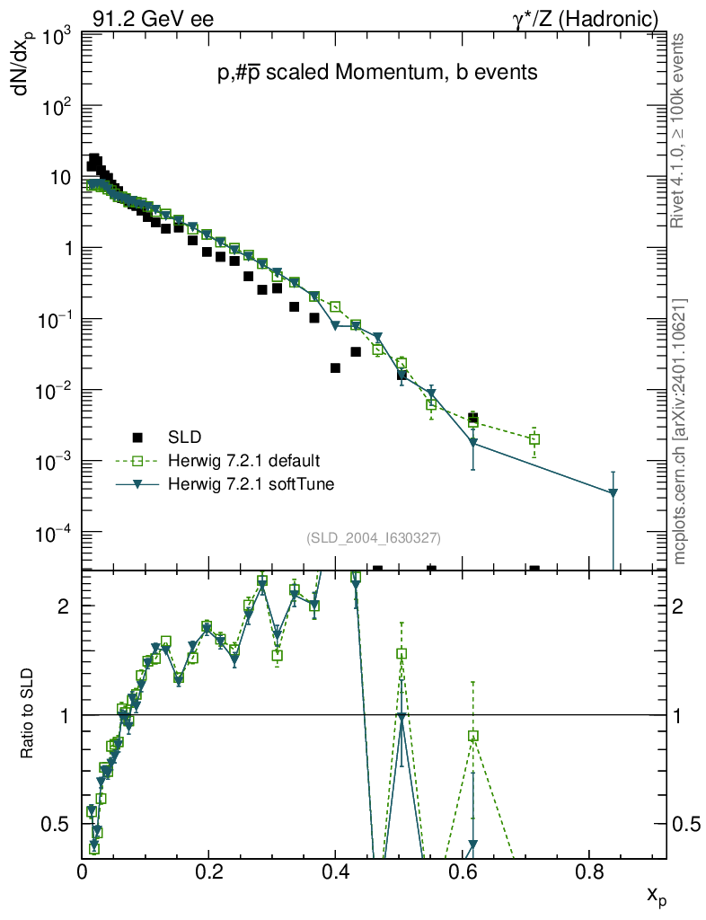 ee : γ*/Z (hadronic) : Identified Particles : p spectrum