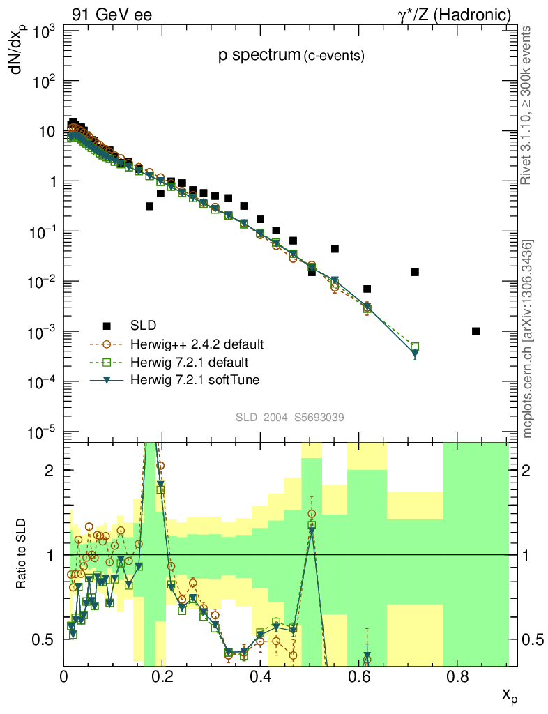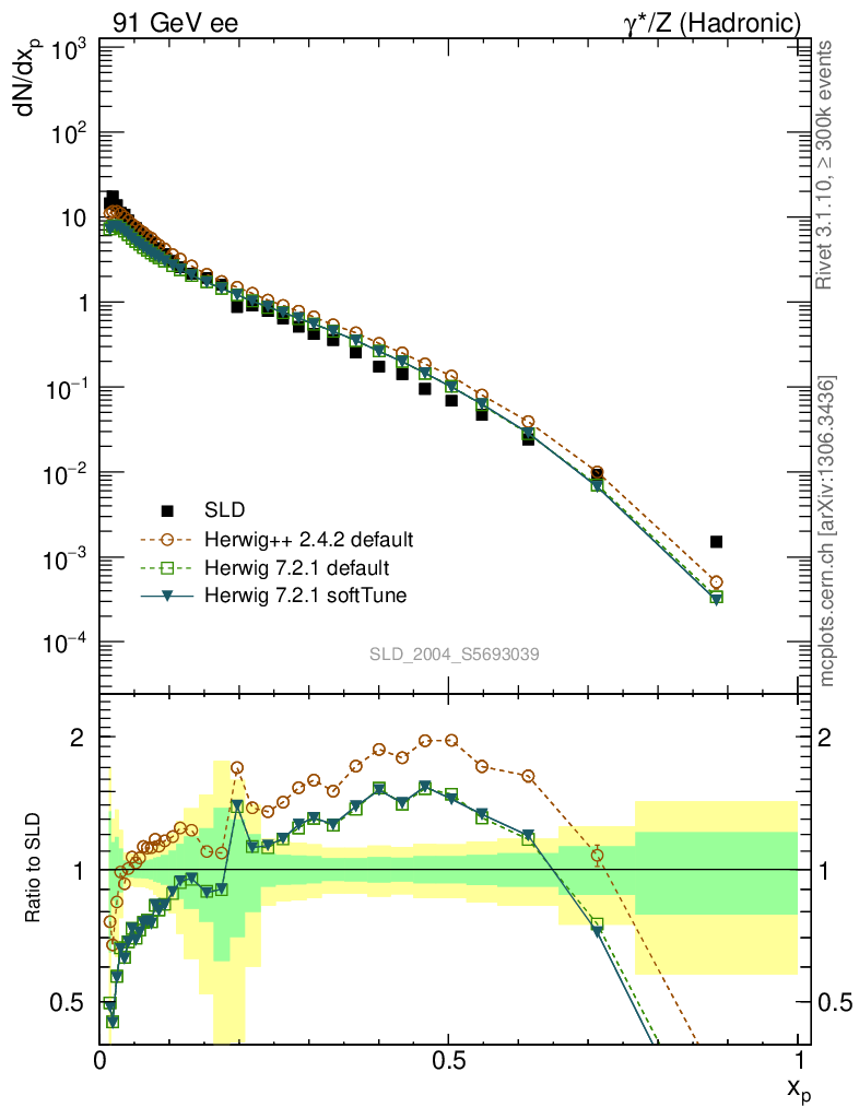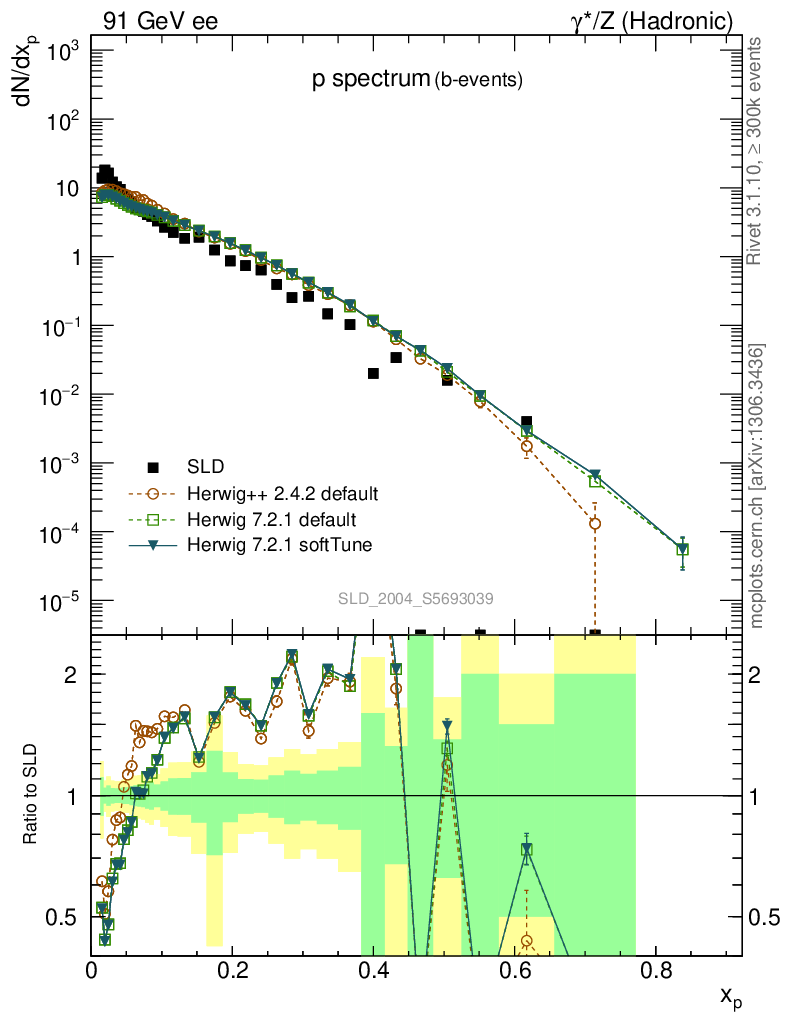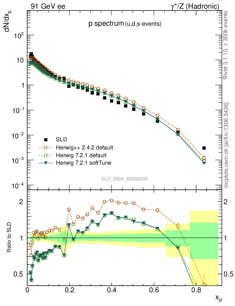 ee : γ*/Z (hadronic) : Identified Particles : p spectrum