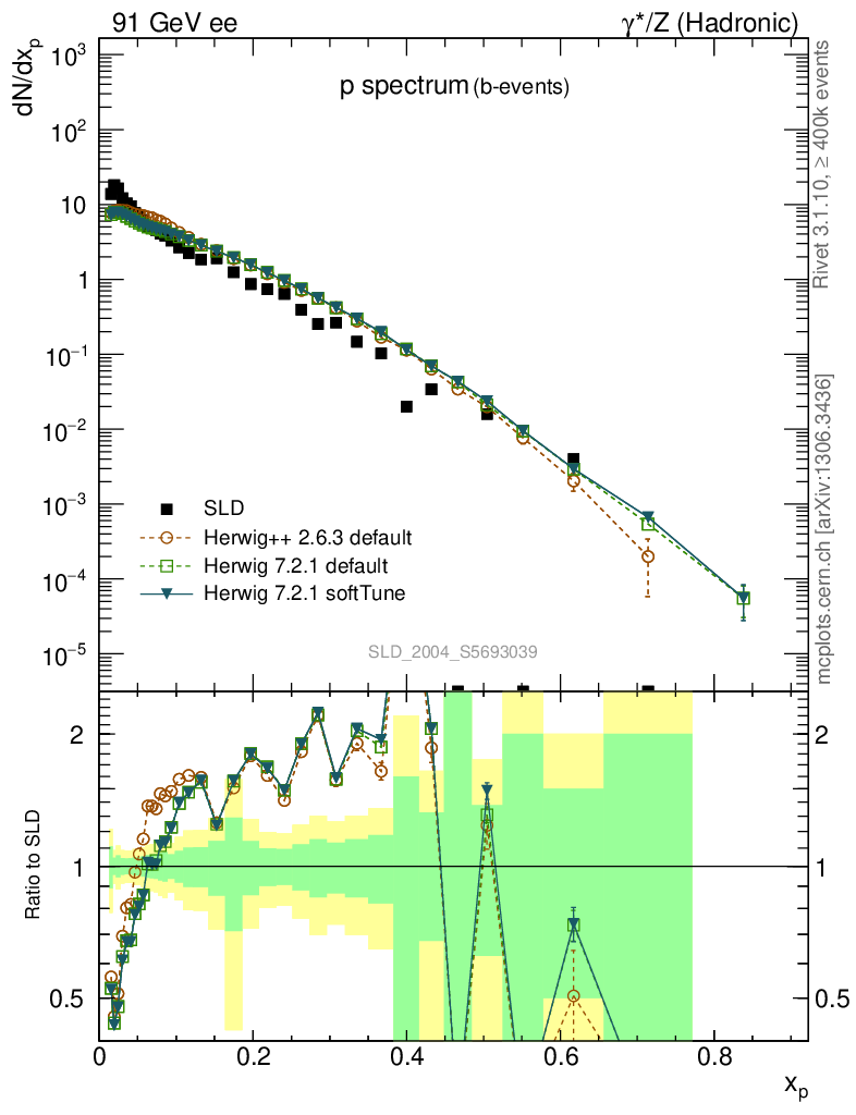 ee : γ*/Z (hadronic) : Identified Particles : p spectrum