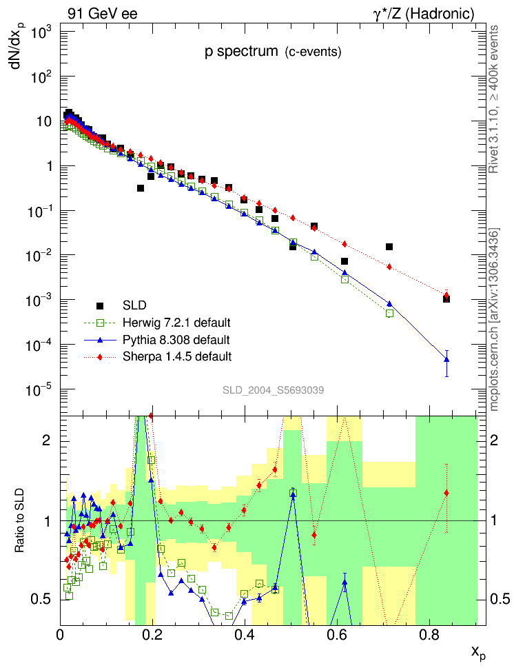 ee : γ*/Z (hadronic) : Identified Particles : p spectrum