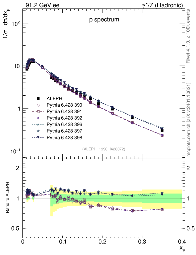 ee : γ*/Z (hadronic) : Identified Particles : p spectrum
