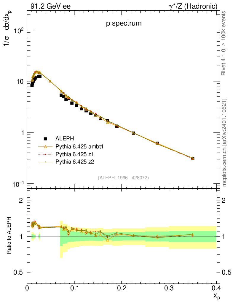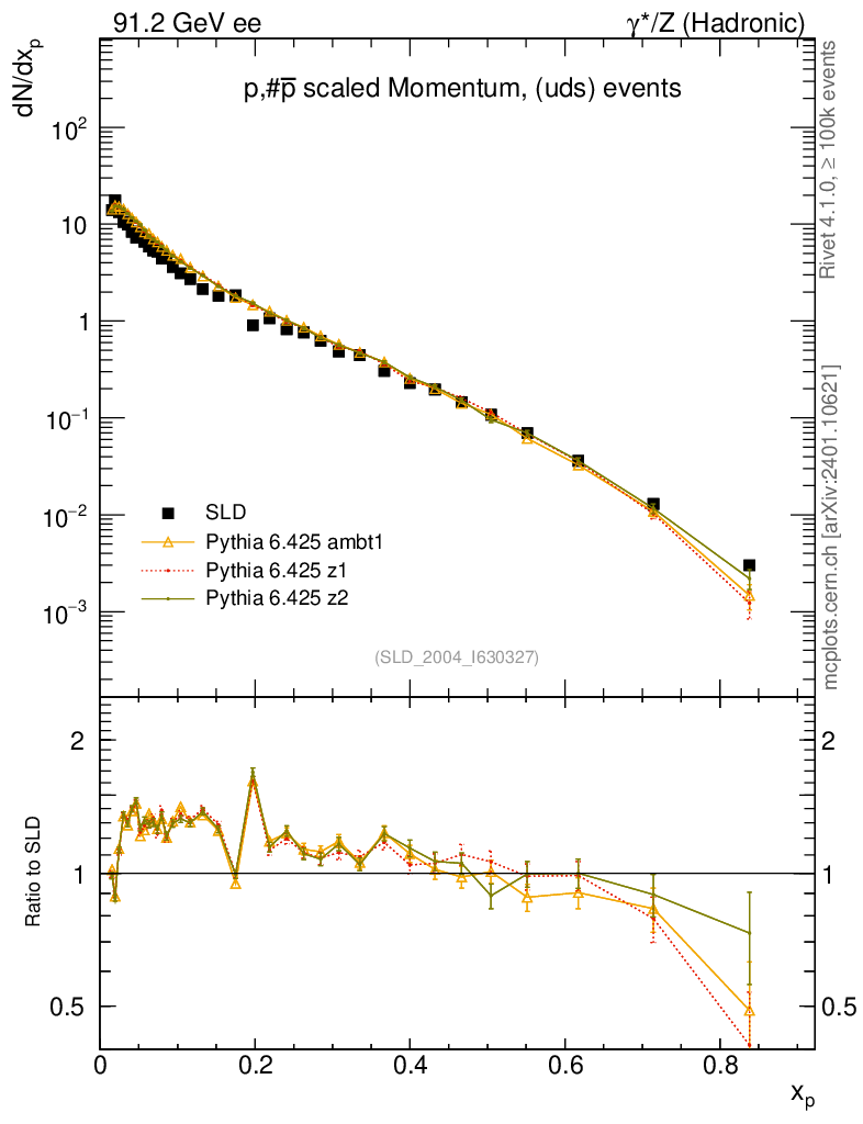 ee : γ*/Z (hadronic) : Identified Particles : p spectrum