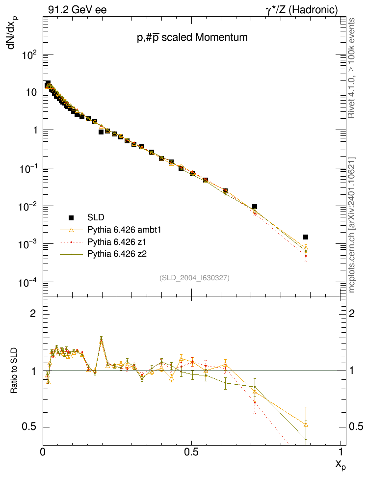 ee : γ*/Z (hadronic) : Identified Particles : p spectrum