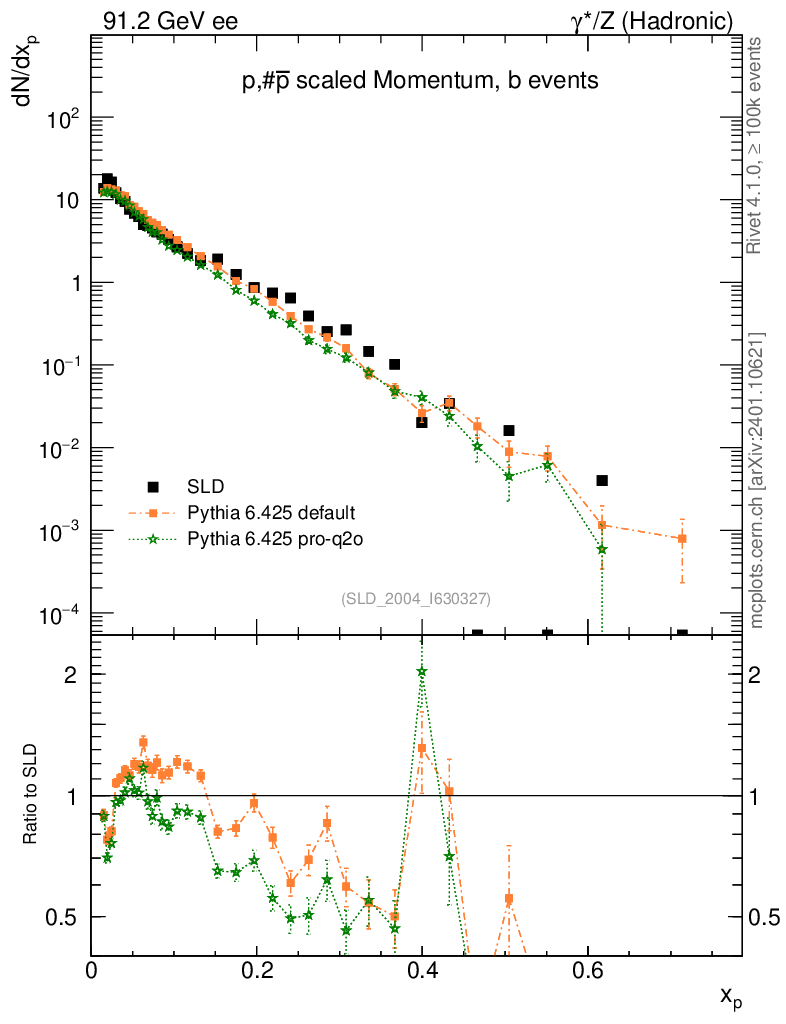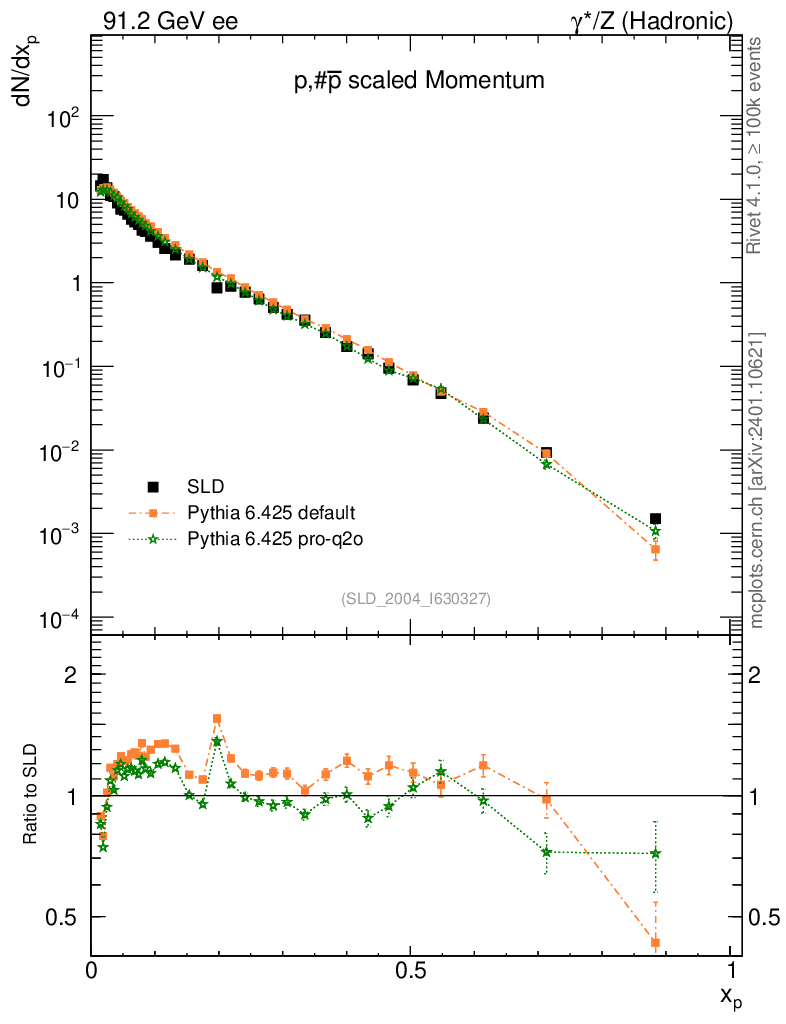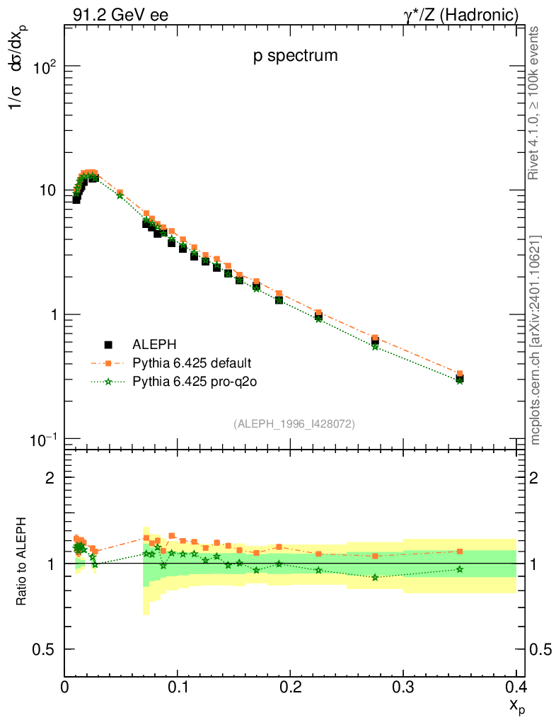ee : γ*/Z (hadronic) : Identified Particles : p spectrum