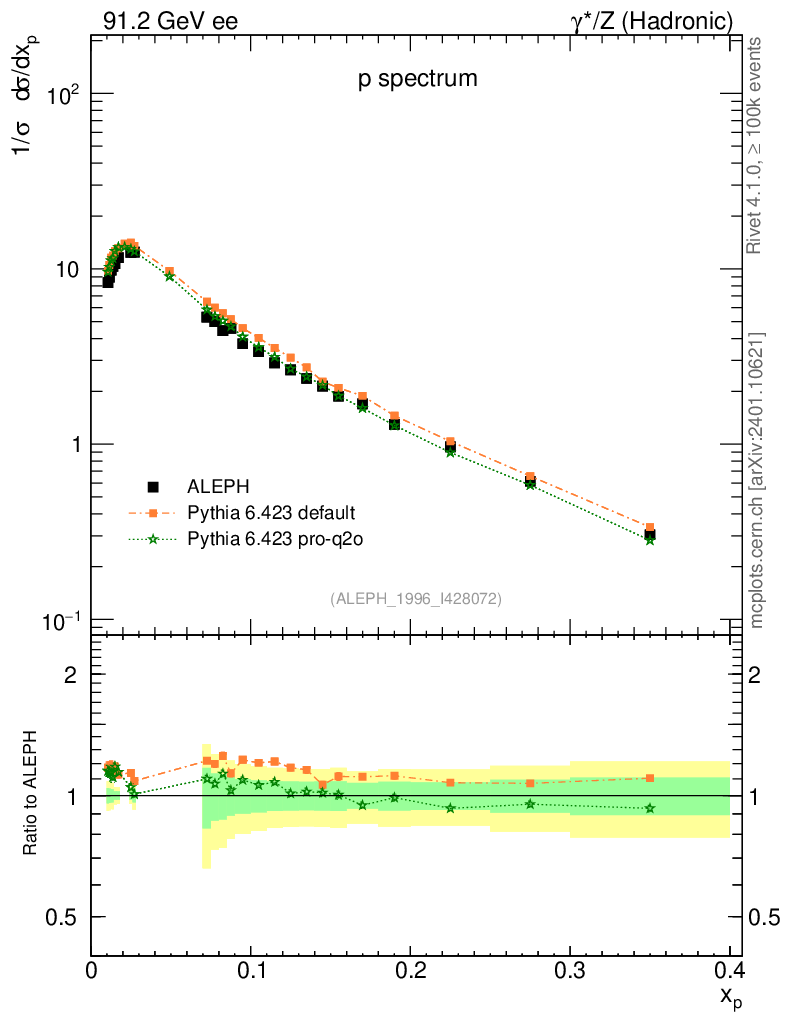 ee : γ*/Z (hadronic) : Identified Particles : p spectrum