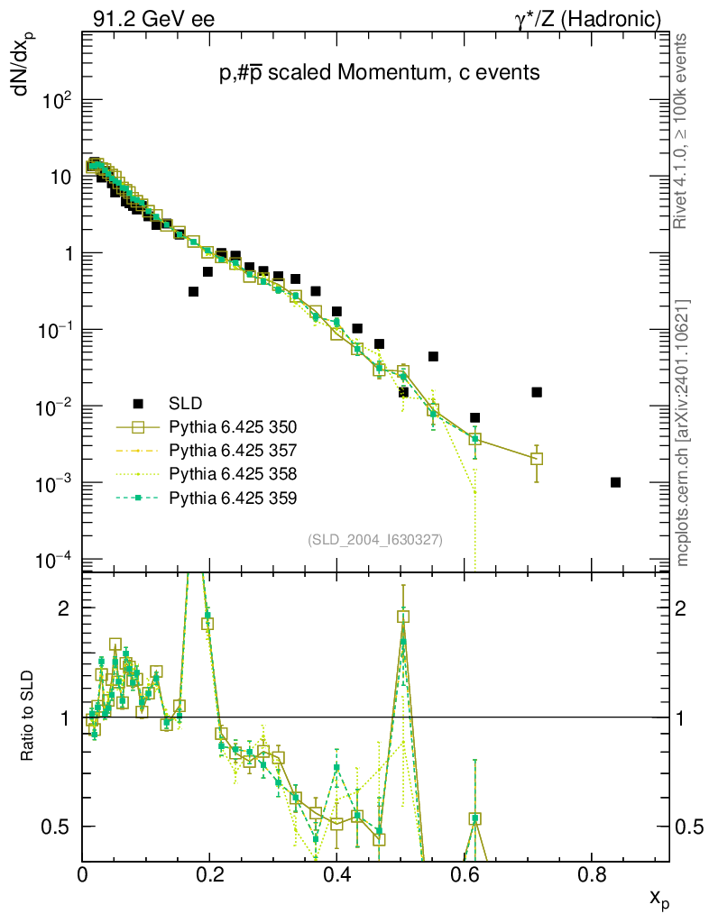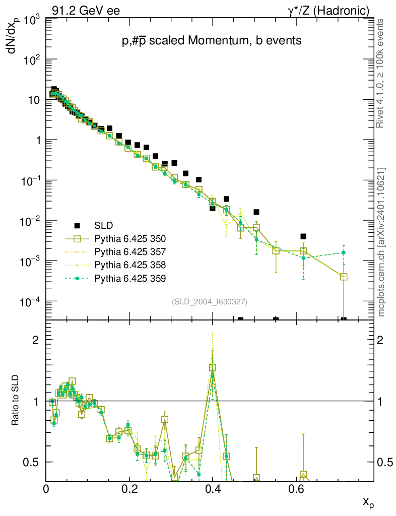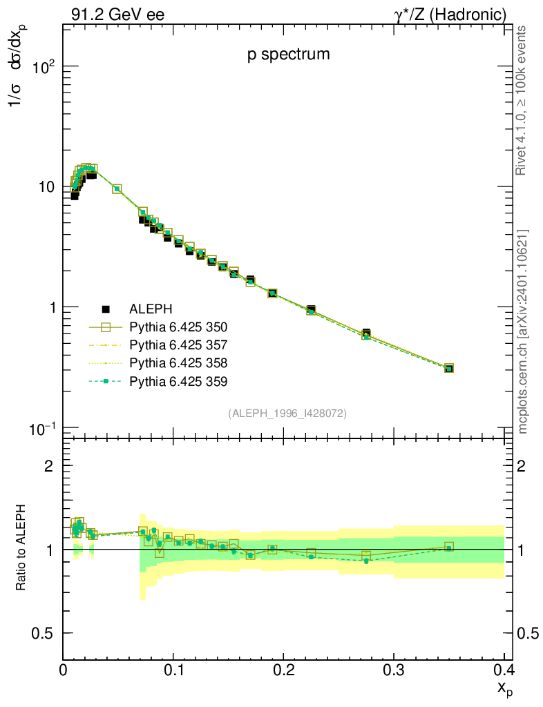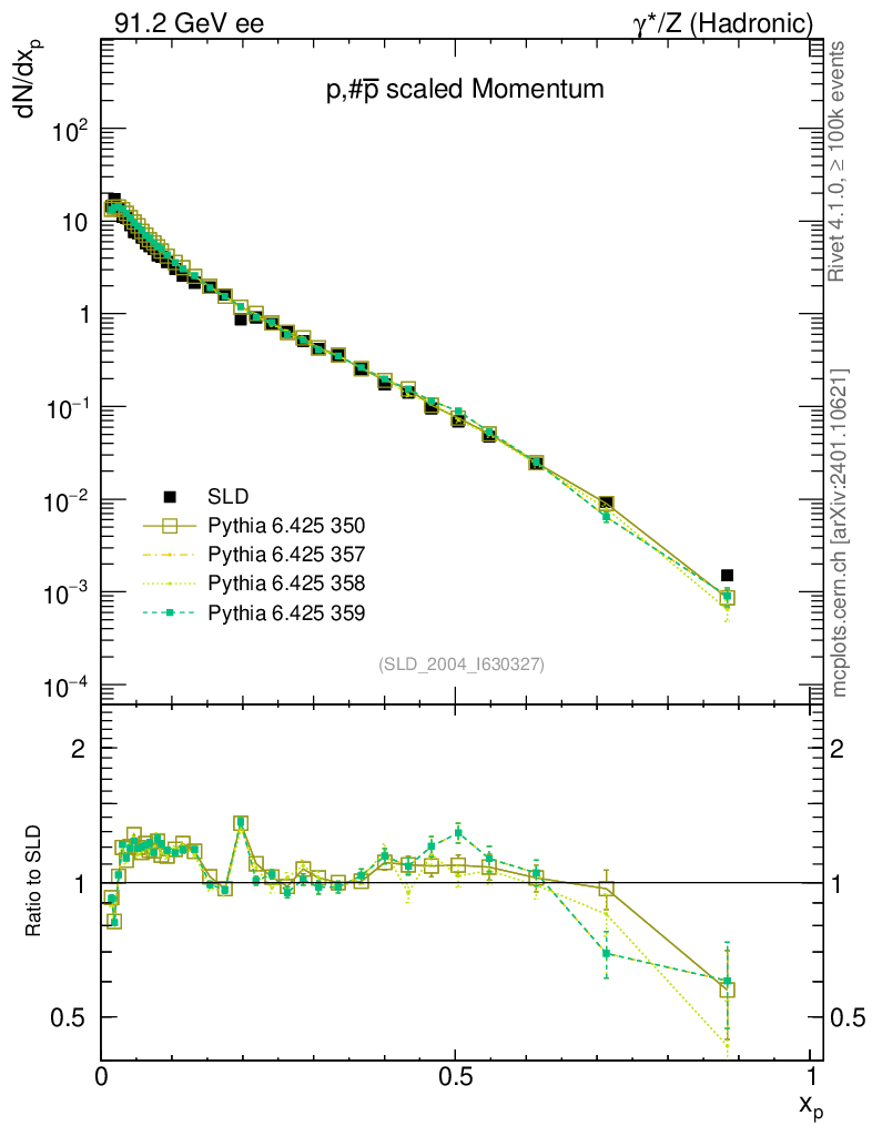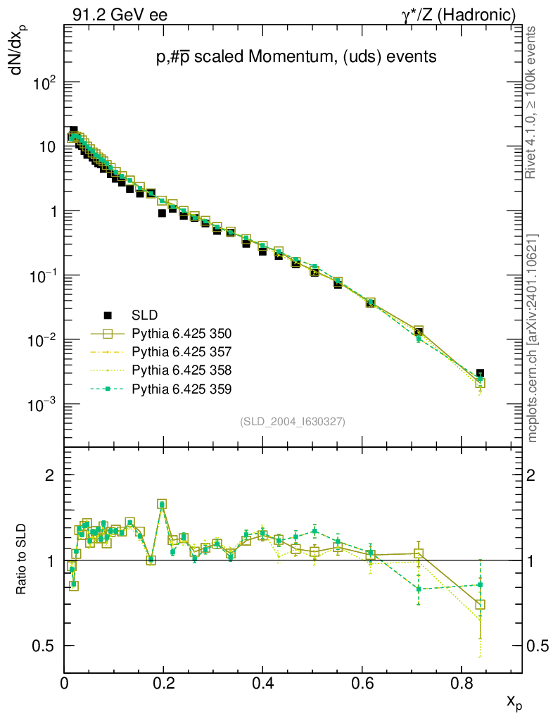 ee : γ*/Z (hadronic) : Identified Particles : p spectrum