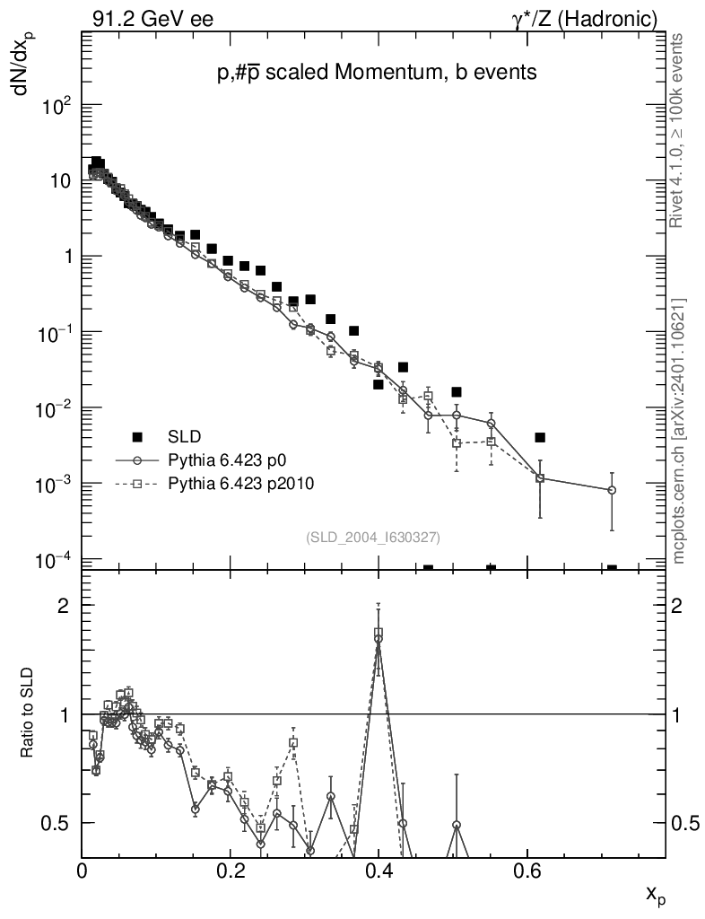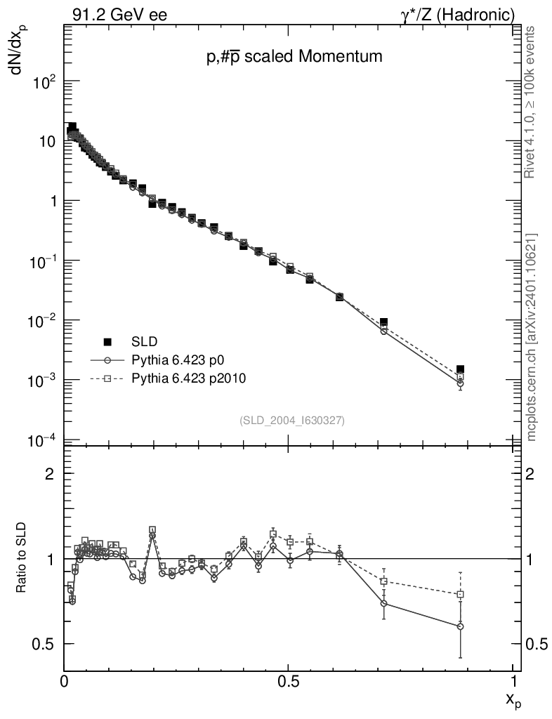 ee : γ*/Z (hadronic) : Identified Particles : p spectrum