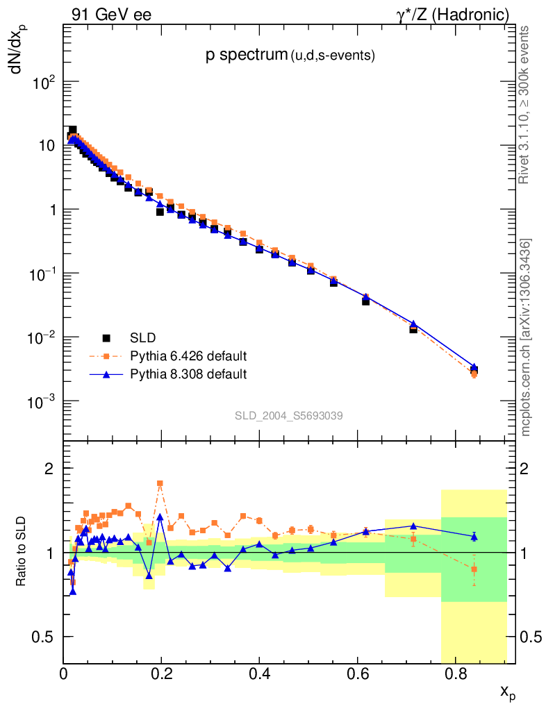 ee : γ*/Z (hadronic) : Identified Particles : p spectrum