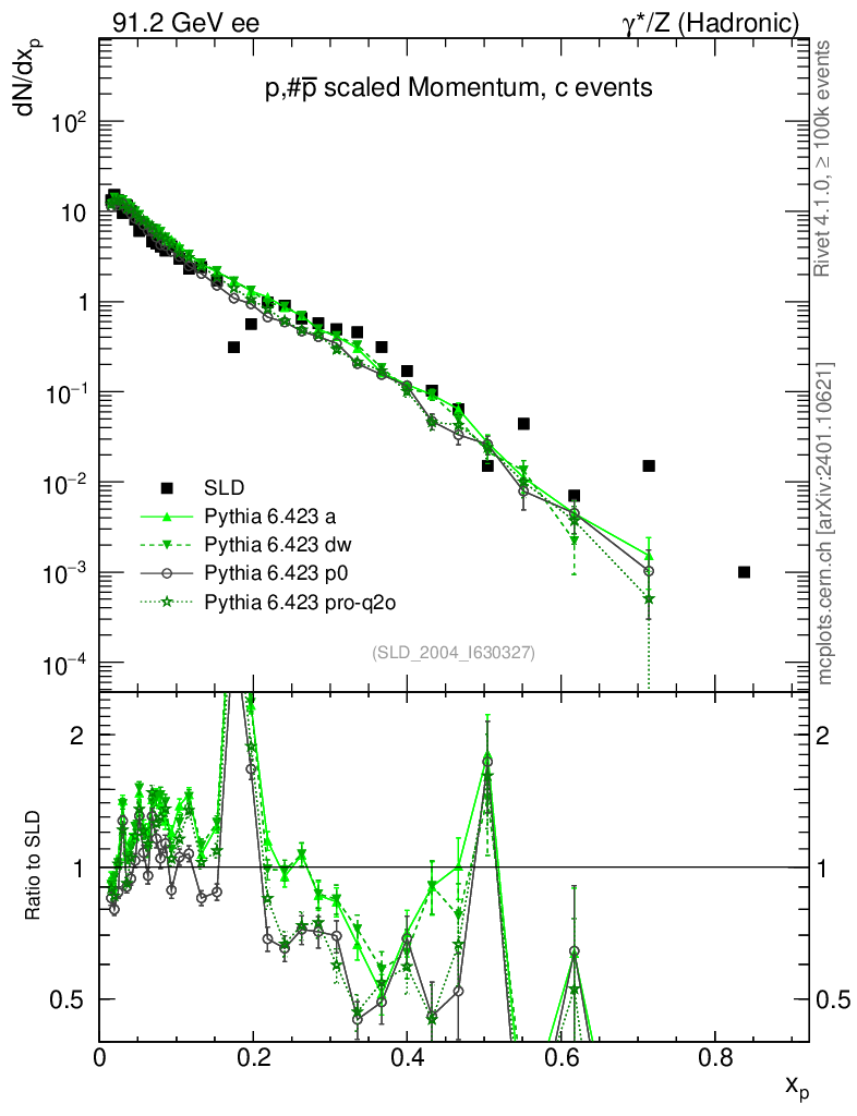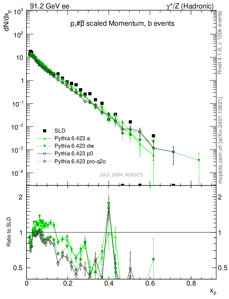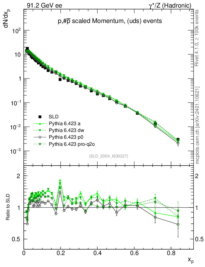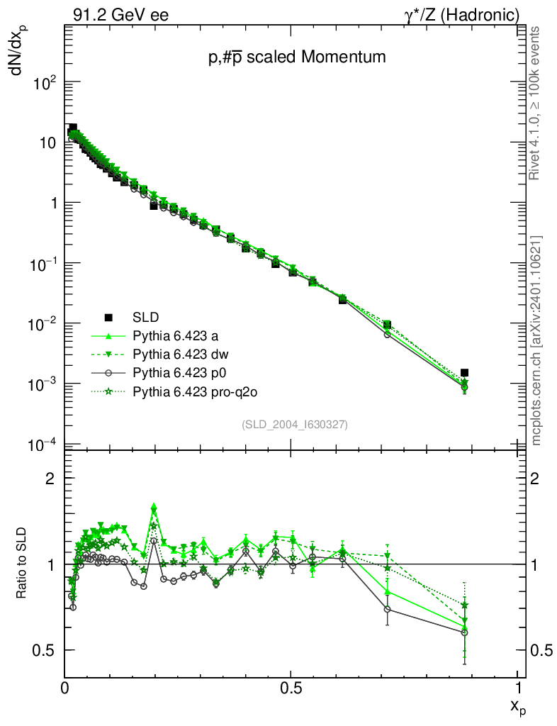 ee : γ*/Z (hadronic) : Identified Particles : p spectrum