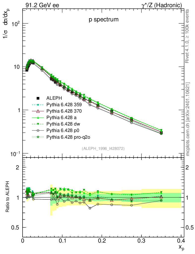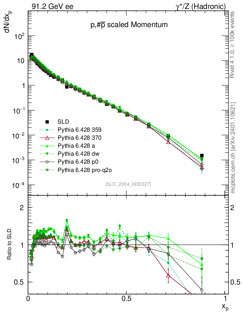 ee : γ*/Z (hadronic) : Identified Particles : p spectrum