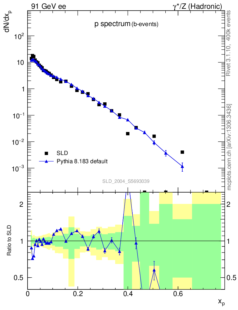 ee : γ*/Z (hadronic) : Identified Particles : p spectrum