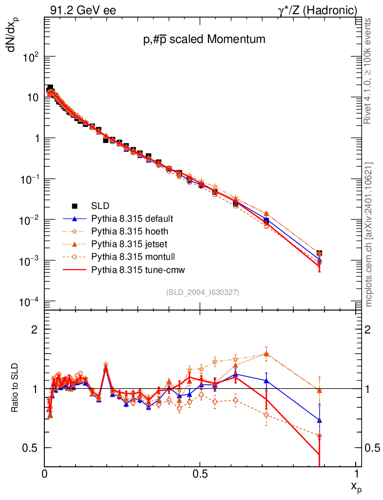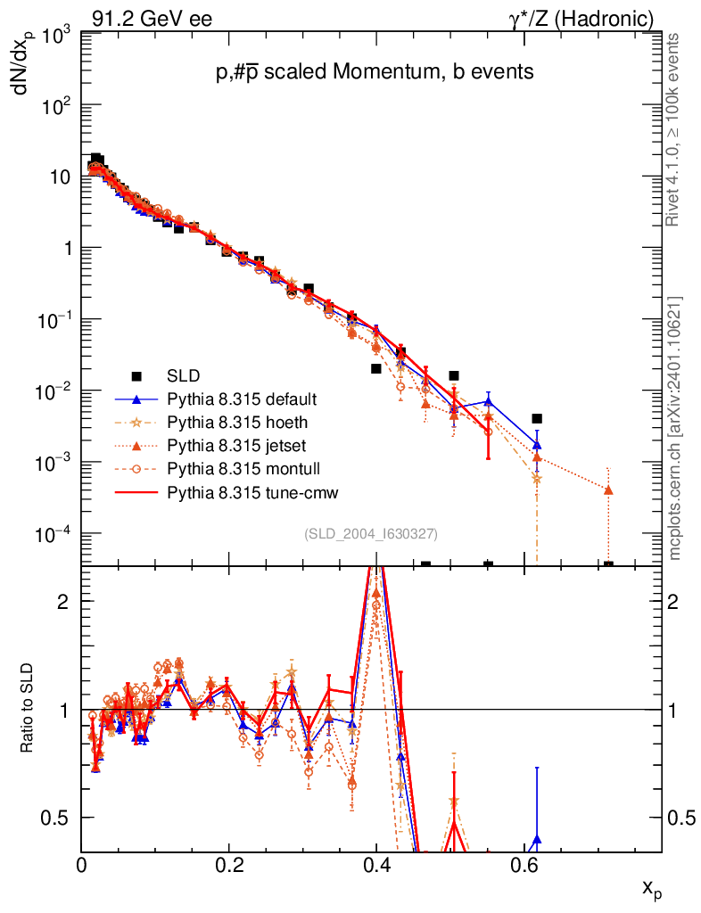 ee : γ*/Z (hadronic) : Identified Particles : p spectrum