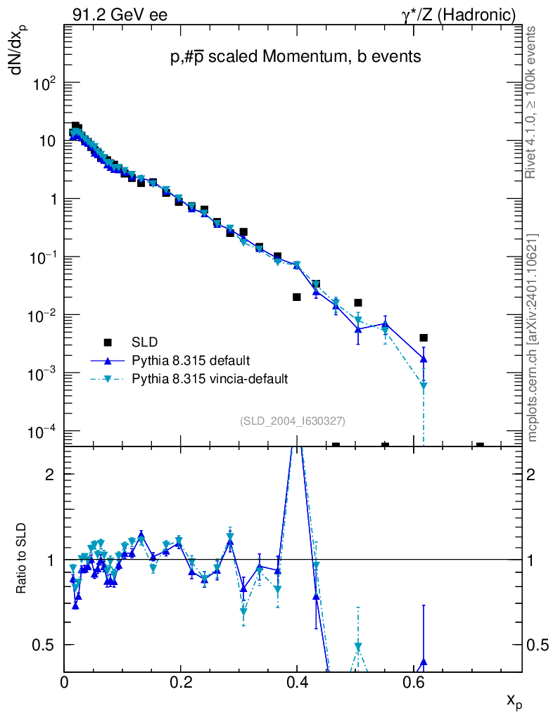 ee : γ*/Z (hadronic) : Identified Particles : p spectrum