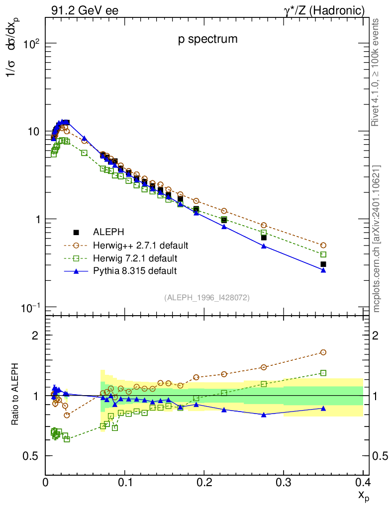 ee : γ*/Z (hadronic) : Identified Particles : p spectrum