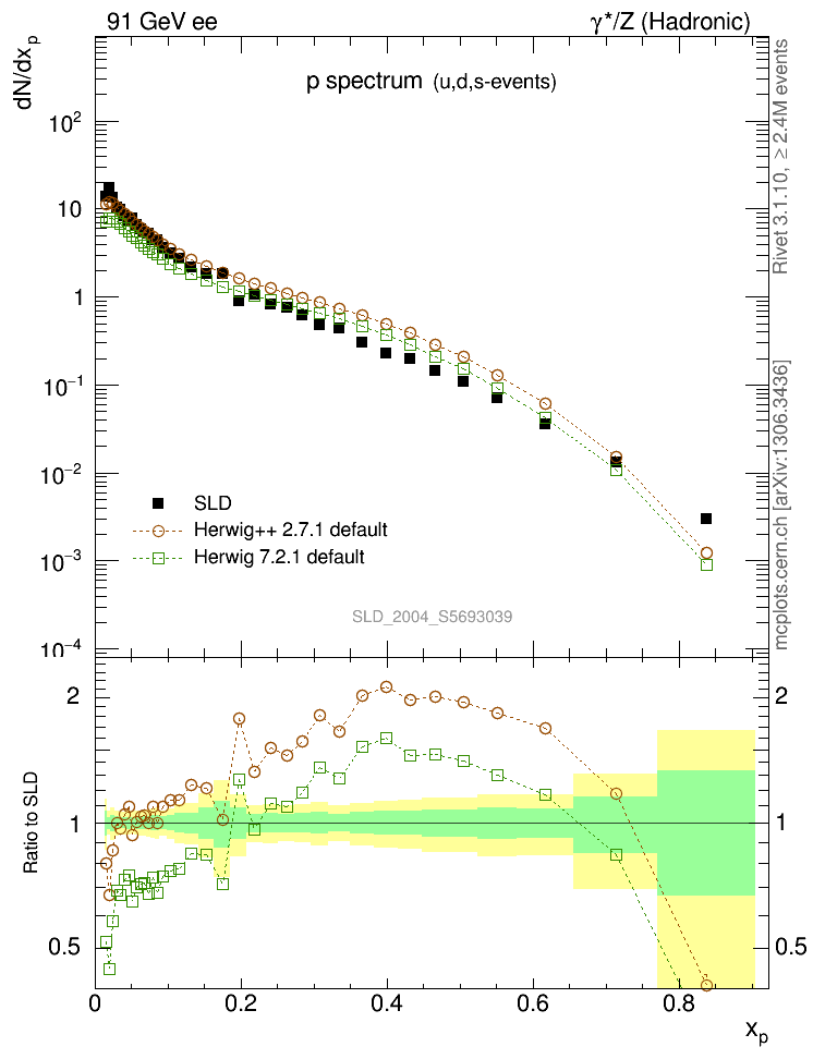 ee : γ*/Z (hadronic) : Identified Particles : p spectrum