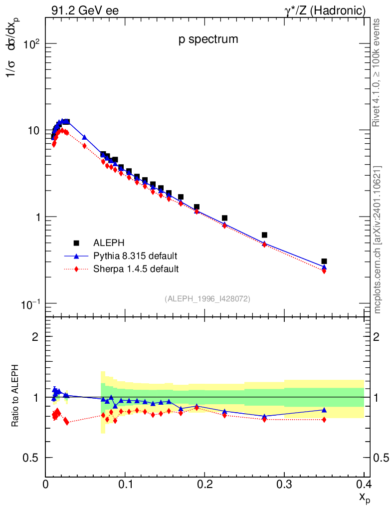 ee : γ*/Z (hadronic) : Identified Particles : p spectrum